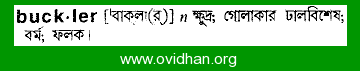 | Buckler: English to English | | Buckler (n.) A block of wood or plate of iron made to fit a hawse hole, or the circular opening in a half-port, to prevent water from entering when the vessel pitches. | | Buckler (n.) A kind of shield, of various shapes and sizes, worn on one of the arms (usually the left) for protecting the front of the body. | | Buckler (n.) One of the large, bony, external plates found on many ganoid fishes. | | Buckler (n.) The anterior segment of the shell of trilobites. | | Buckler (v. t.) To shield; to defend. | |