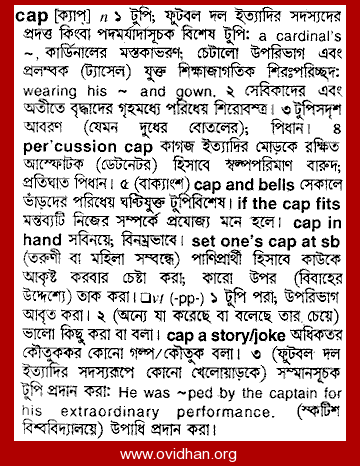 | Cap (n.) The uppermost of any assemblage of parts; as, the cap of column, door, etc.; a capital, coping, cornice, lintel, or plate. |