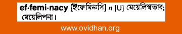 Effeminacy(n.) Characteristic quality of a woman, such as softness, luxuriousness, delicacy, or weakness, which is unbecoming a man; womanish delicacy or softness; -- used reproachfully of men.