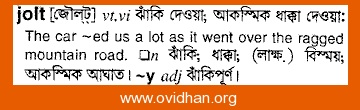 Jolt(n.) A sudden shock or jerk; a jolting motion, as in a carriage moving over rough ground.