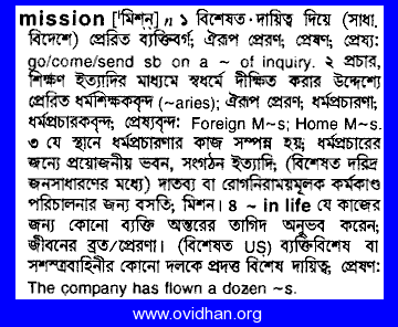 | Mission (n.) An assotiation or organization of missionaries; a station or residence of missionaries. |