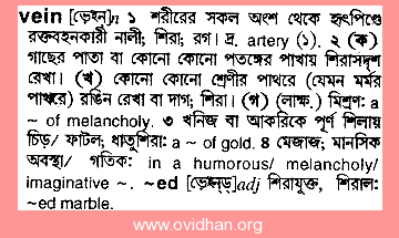Vein(n.) A streak or wave of different color, appearing in wood, and in marble and other stones; variegation.